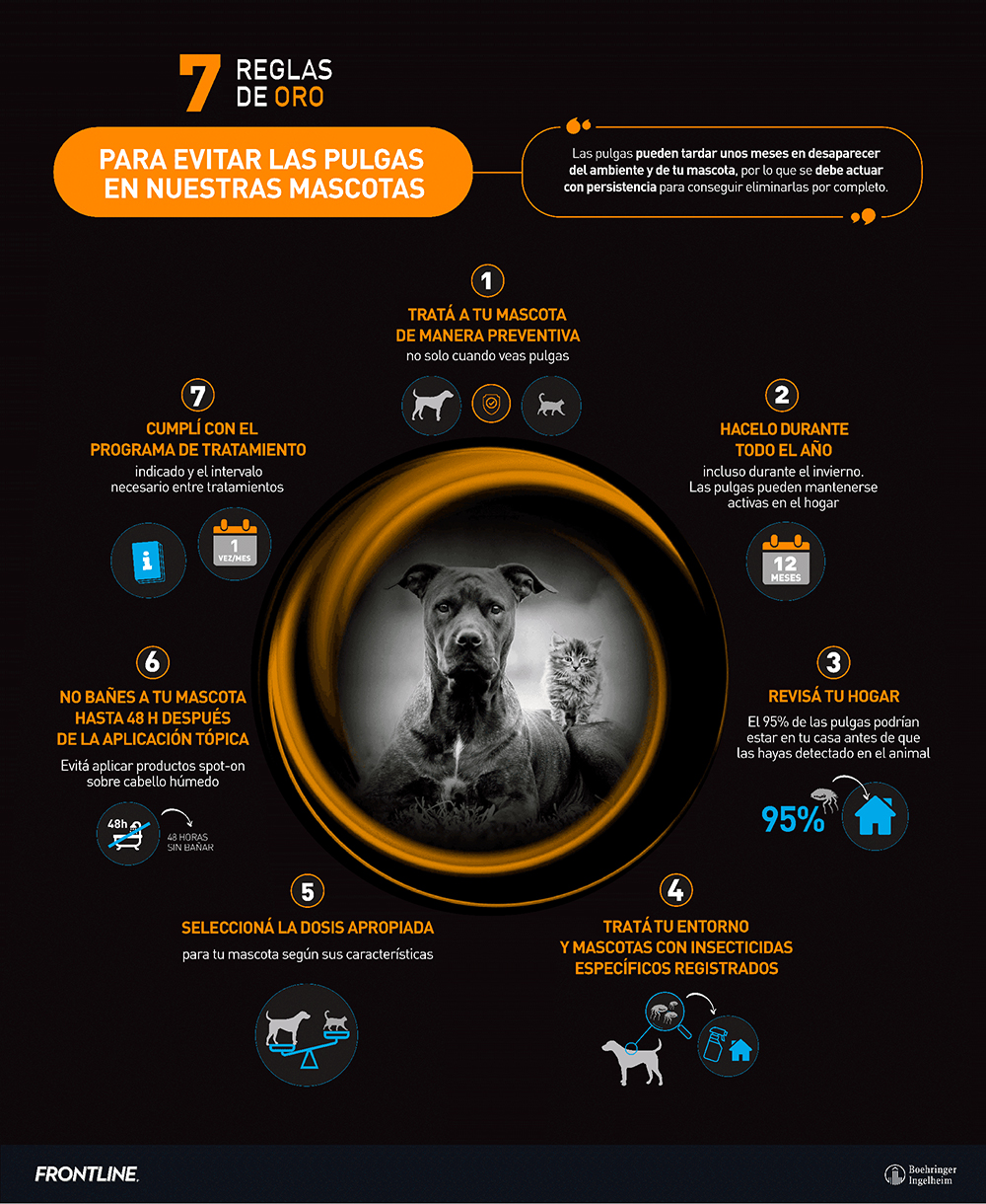 Recordá también que las pulgas tratadas pueden volverse más activas antes de morir.
